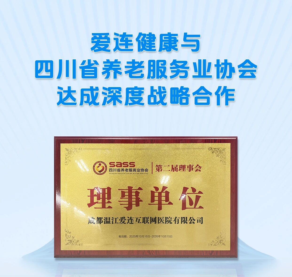 爱连健康与四川省养老服务业协会达成深度战略合作,正式成为该协会理事会员单位。授牌仪式于今日在成都举行,标志着爱连健康在智慧养老领域的专业能力与服务模式获得行业高度认可,双方将携手共促四川省养老服务事